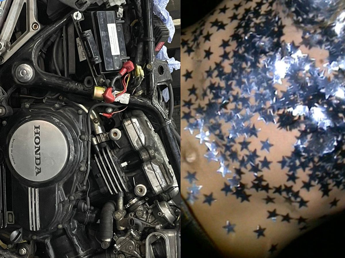 I’m so grateful for the impetus of this issue, Maite’s photographs, as well as the hours we spent working side by side at Present Tense last year while they were artist in resident; for the many detours we took into process & at times, crush fall-out. Connecting, in this issue, the images of star-adorned flesh & the images of crushed cars (their deep fascination) really clicked something into place for me. Following this line of enquiry has given me a new way to think about salvage, armouring & perceptibility, & I’m so grateful for that new highway in my mind.